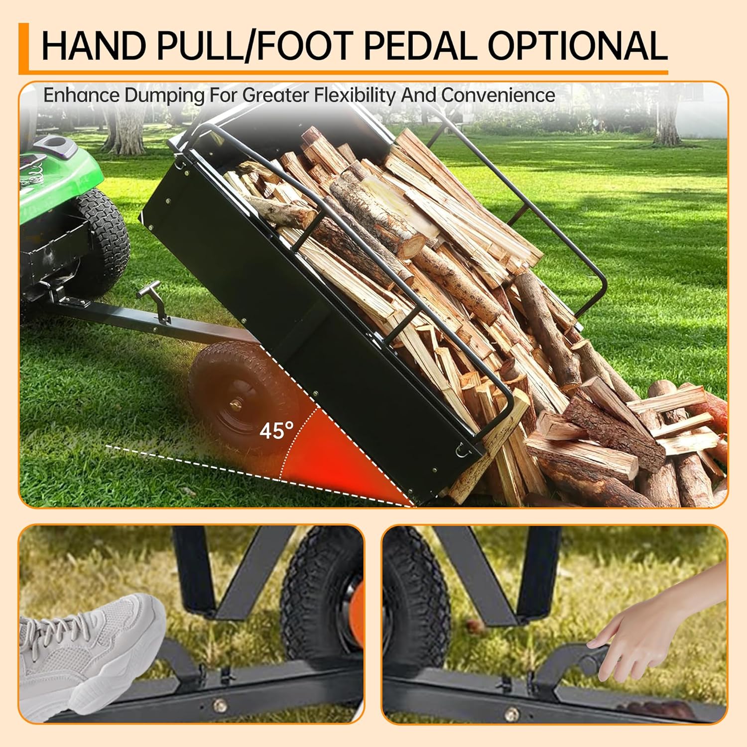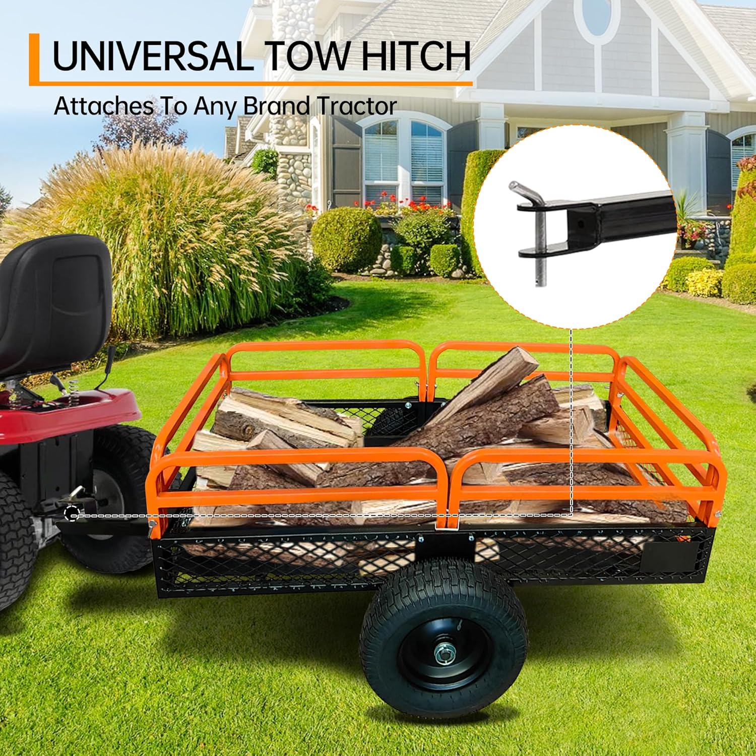 Compatible with lawn mowers, tractors, and ATVs for towing